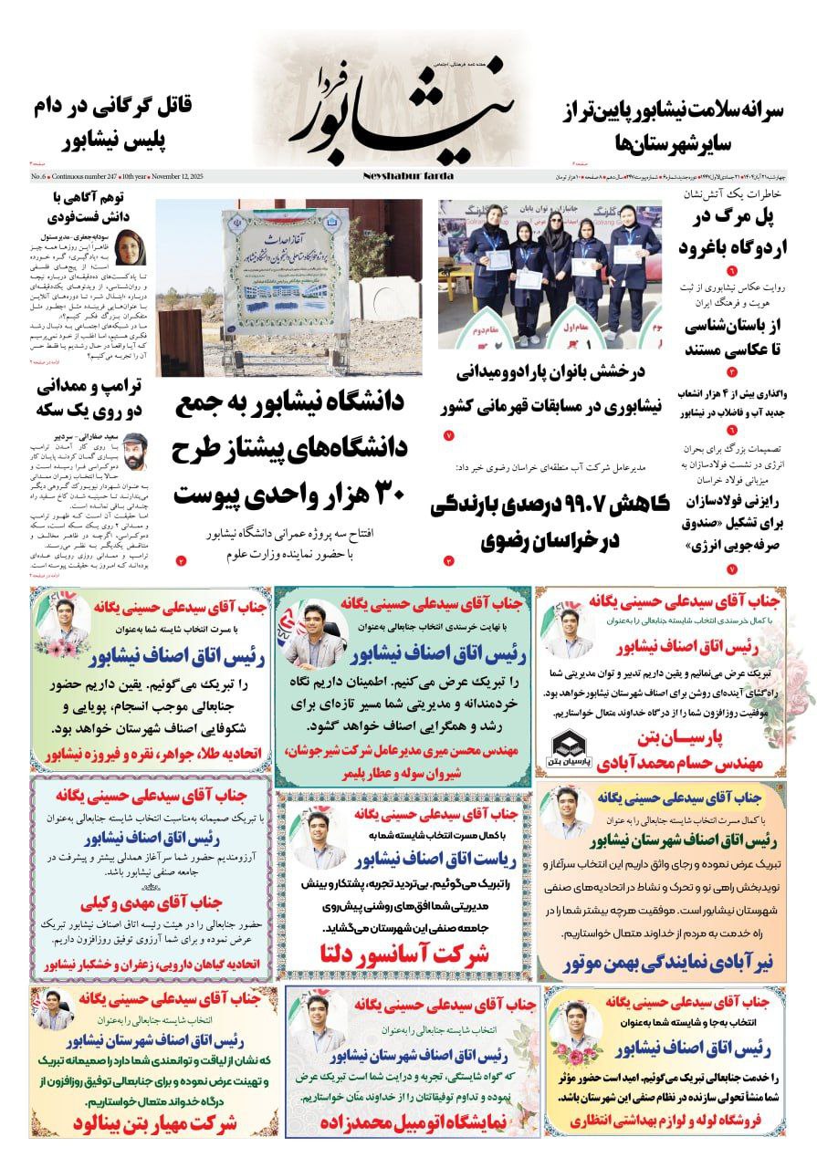 نیشابور فردا- ابر شهر نیشابور از دیرباز عرصه هنرمندان و صنعتگران بوده است، چه در اعصار و قرون قدیم که گواه آن سفالینه هایی است که از دل خاک این شهر برون آمده است و چه در دوران صنعتی که احداث کارخانه هایی همانند کارخانه قند، روغن، ایران شرق، نیروگاه سیکل ترکیبی، مجتمع فولاد خراسان، گروه خیام فولاد نیشابور و انبوهی از کارخانه های کوچک و بزرگ در شهرک های صنعتی احداث شده اند.